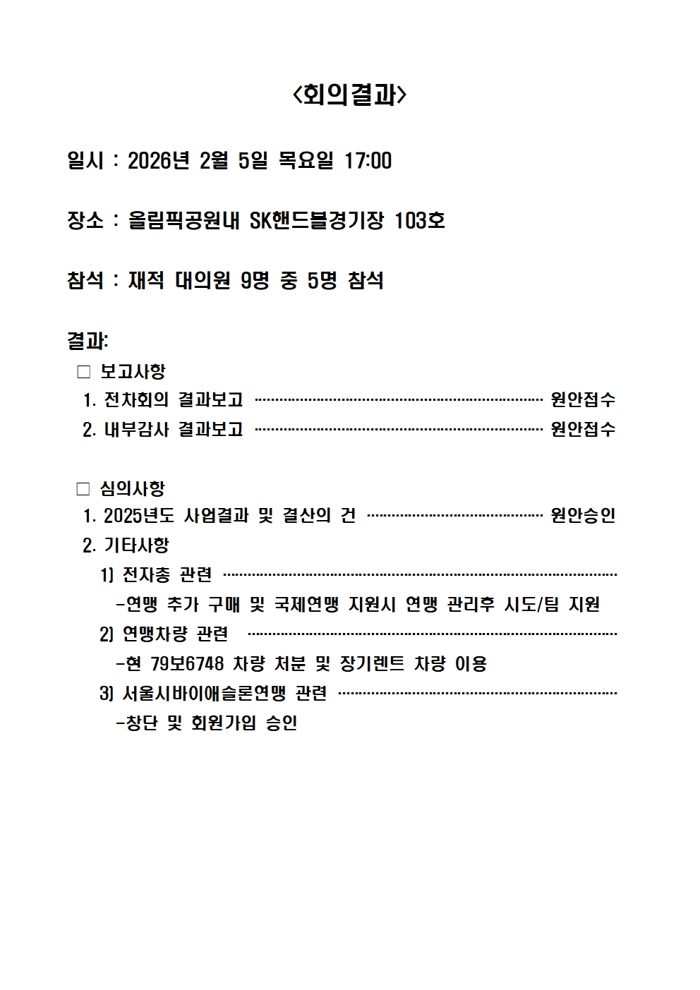 2026³âµµ Á¤±â´ëÀÇ¿øÃÑȸ ȸÀǰá°ú