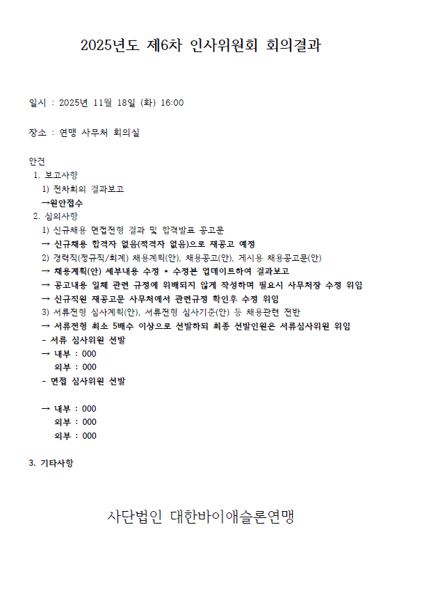 2025³âµµ Á¦6Â÷ ÀλçÀ§¿øÈ¸ °á°ú º¸°í