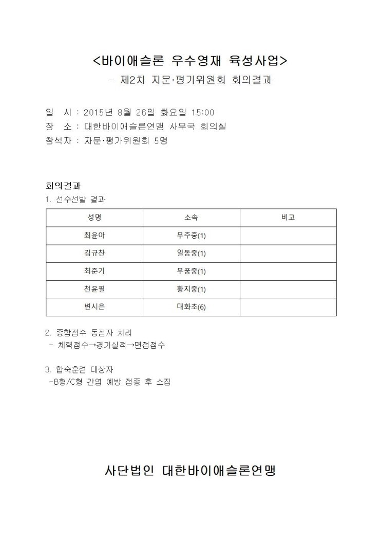 ¿ì¼ö¿µÀçÀ°¼º»ç¾÷ ¼±¼ö¼±¹ß °á°ú