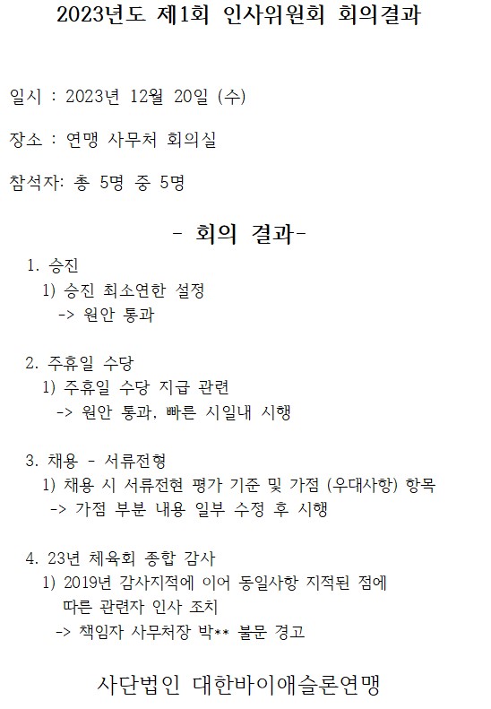 2023³âµµ Á¦1Â÷ ÀλçÀ§¿øÈ¸ °á°úº¸°í