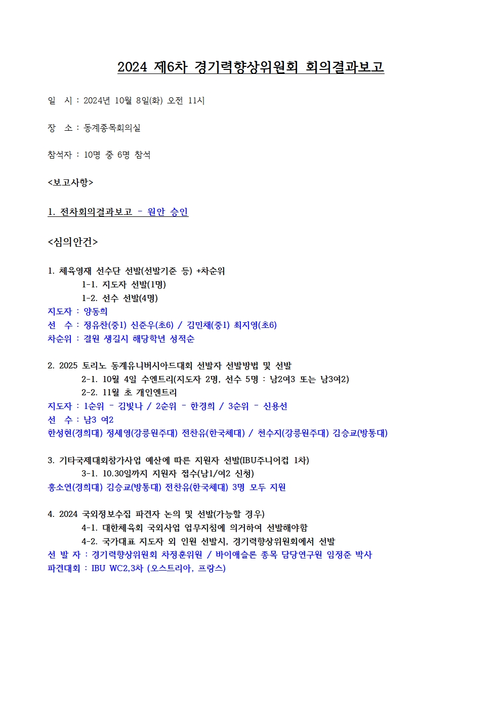 2024³âµµ Á¦6Â÷ °æ±â·ÂÇâ»óÀ§¿øÈ¸ °á°ú º¸°í