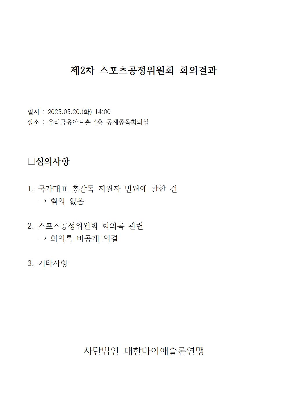 2025³âµµ Á¦2Â÷ ½ºÆ÷Ã÷°øÁ¤À§¿øÈ¸ °á°ú º¸°í