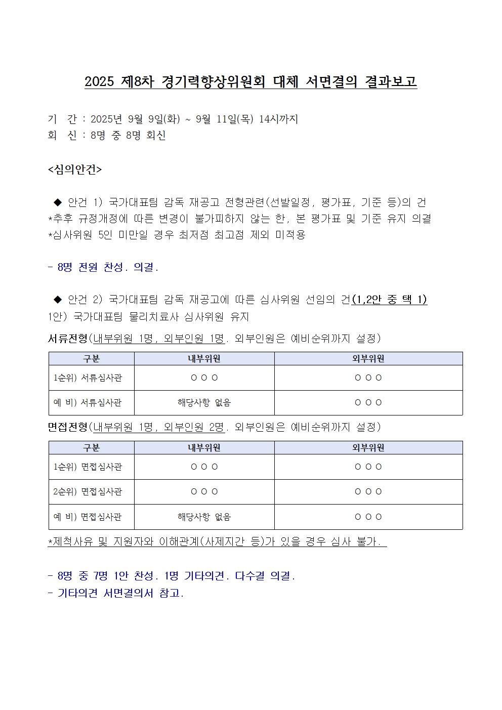 2025 Á¦8Â÷ °æ±â·ÂÇâ»óÀ§¿øÈ¸ ´ëü ¼¸é°áÀÇ °á°úº¸°í