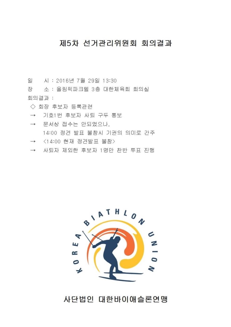 2016. 7. 29 Á¦5Â÷ ȸÀå¼±°Å°ü¸®À§¿øÈ¸ ȸÀǰá°ú