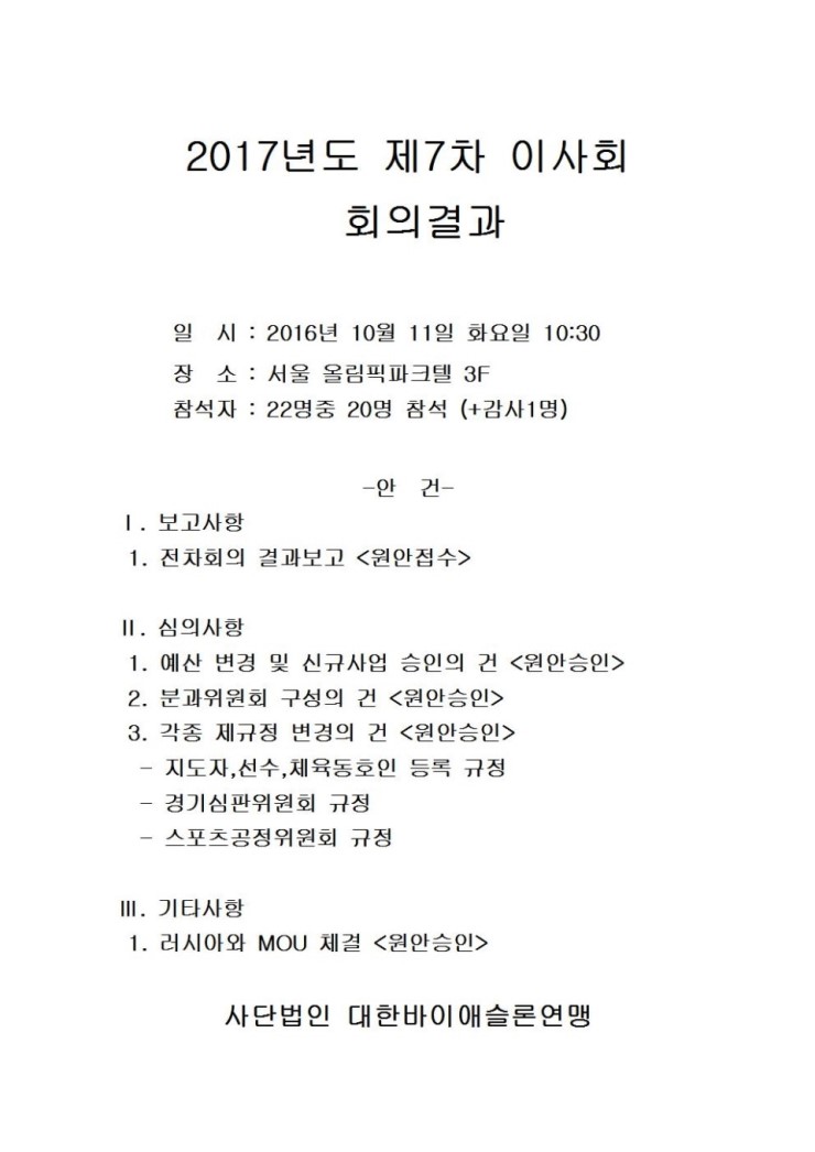 2016. 10. 11 Á¦7Â÷ ÀÌ»çȸ ȸÀǰá°ú