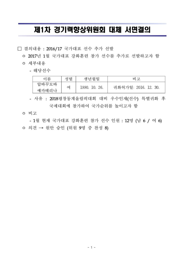 2017. 1. 5. Á¦1Â÷ °æ±â·ÂÇâ»óÀ§¿øÈ¸ ´ëü ¼¸é°áÀÇ °á°ú