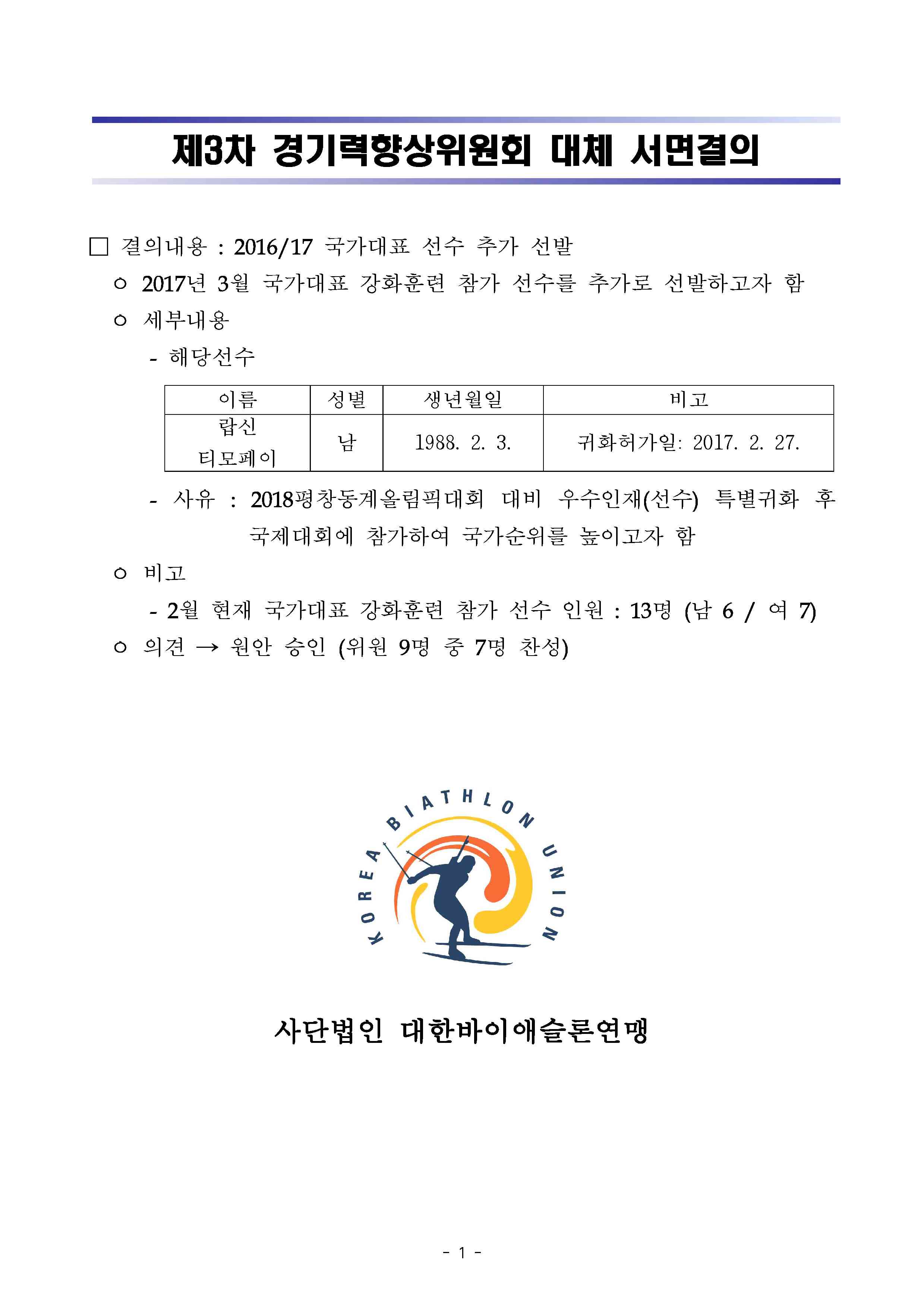 2017. 3. 4. Á¦3Â÷ °æ±â·ÂÇâ»óÀ§¿øÈ¸ ´ëü ¼¸é°áÀÇ °á°ú