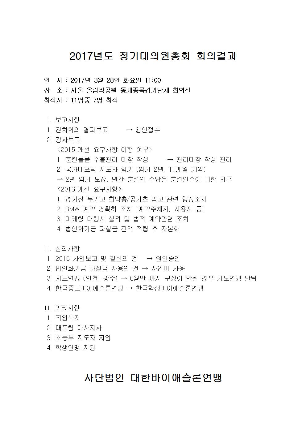 2017. 3. 28 2017³âµµ Á¤±â´ëÀÇ¿øÃÑȸ ȸÀǰá°ú