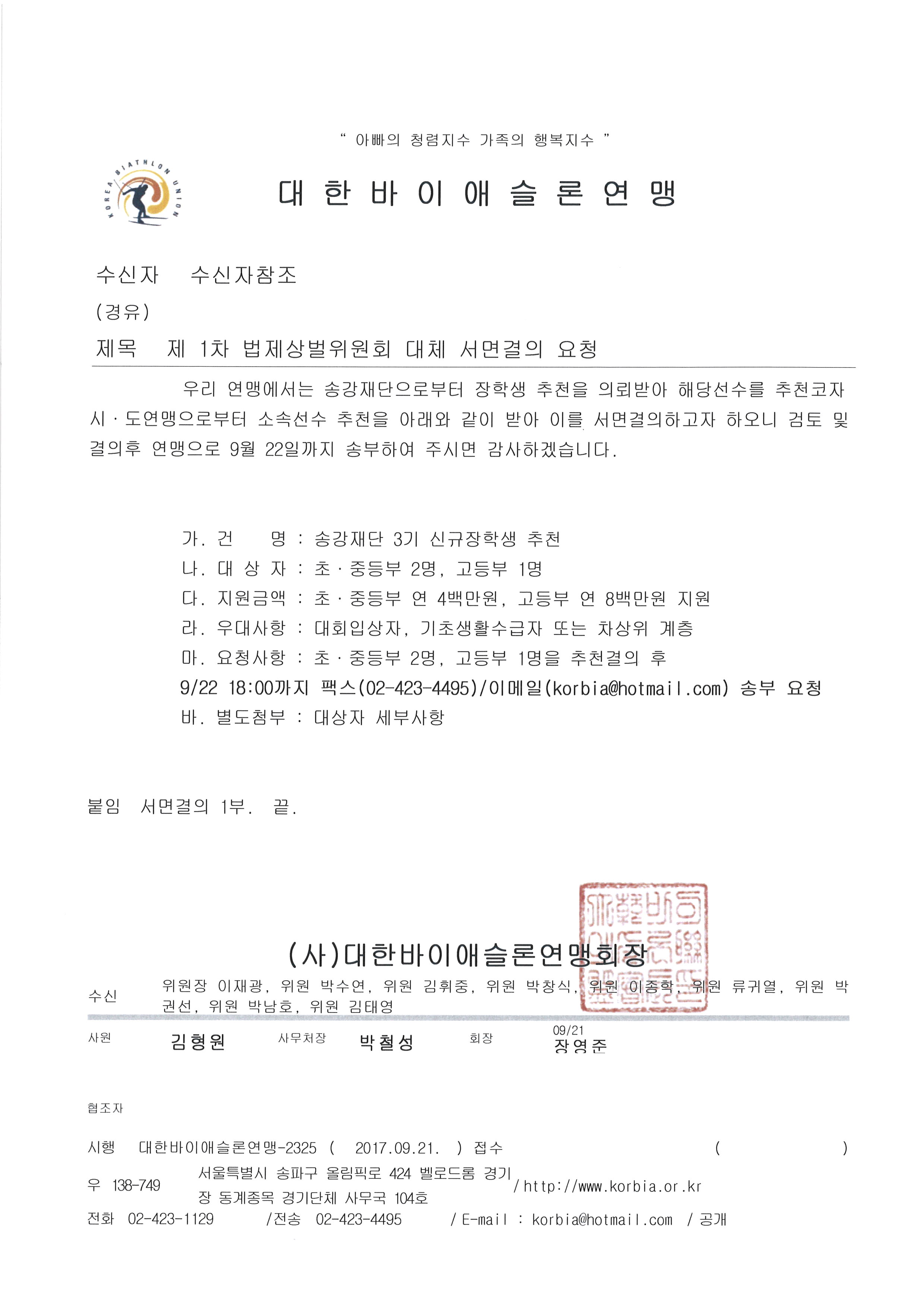 2017. Á¦1Â÷ ½ºÆ÷Ã÷°øÁ¤À§¿øÈ¸(±¸¹ýÁ¦»ó¹úÀ§¿øÈ¸) ´ëü ¼¸é°áÀÇ °á°ú