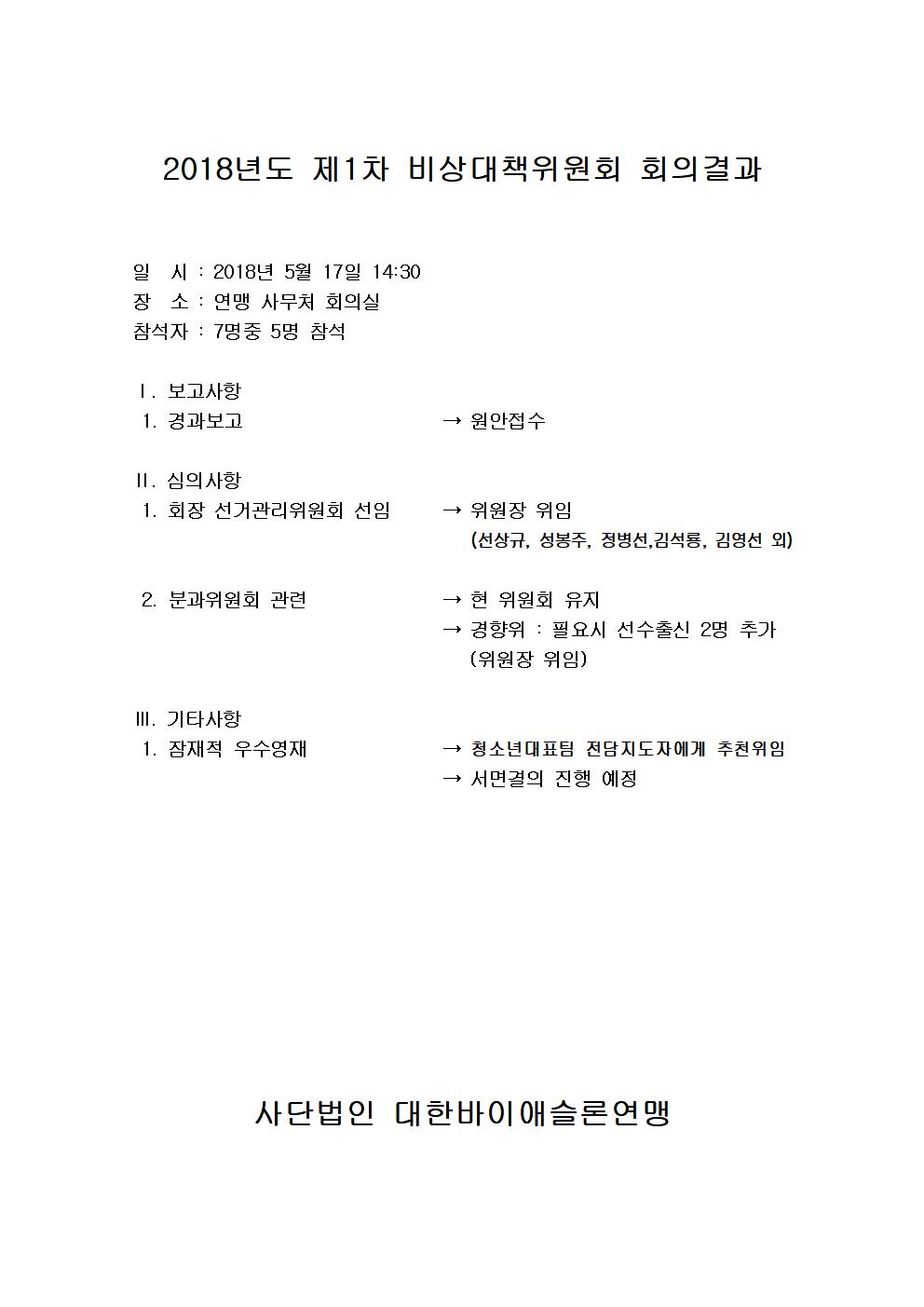 Á¦1Â÷ ºñ»ó´ëÃ¥À§¿øÈ¸ ȸÀǰá°ú