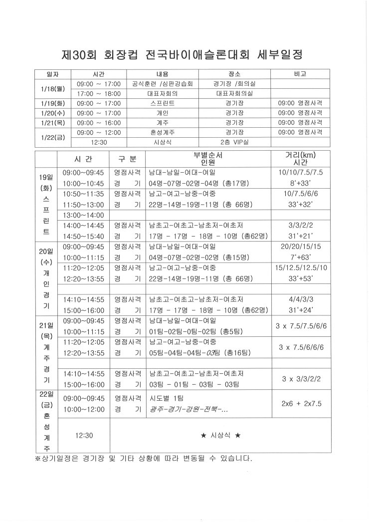 Á¦¸ñ Á¦30ȸ ȸÀåÄÅ ´ëȸ ¼¼ºÎÀÏÁ¤ ¹× °ø½ÄÈÆ·Ã °ü·Ã